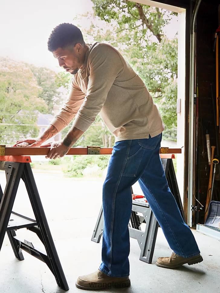 You deserve work clothes that can go the distance no matter where the day takes you. If function is your top priority both on and off the clock, Wrangler RIGGS carpenter jeans have you covered. These hardy jeans are made of 100% cotton DuraShield denim for heavy-duty protection against abrasion and color fading, but that's not all. Our men's carpenter jeans also come with a long list of practical features that will help you power through any project: 1000 Denier CORDURA lined back pockets, a tool pocket, a hammer loop on the right side, and much more. Plus, our RIGGS Workwear carpenter jeans feature the exclusive Room2Move fit with a gusseted crotch construction to help you move more freely and safely. Plus, this carpenter jean comes with a limited lifetime warranty.